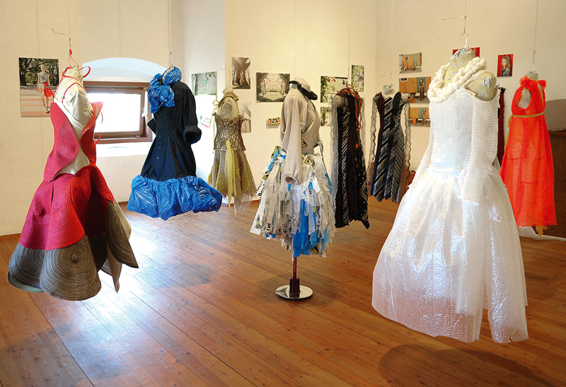 Kunstinteressierte und experimentierfreudige Schülerinnen der Neuen Mittelschule Orth an der Donau entwickelten gemeinsam mit dem museumORTH Kleidermodelle aus Verpackungs- und Haushaltsmaterialien (die in ungewohnter neuer Funktion ein „Second Life“ erleben) und präsentierten ihre Visionen als Modeschau.